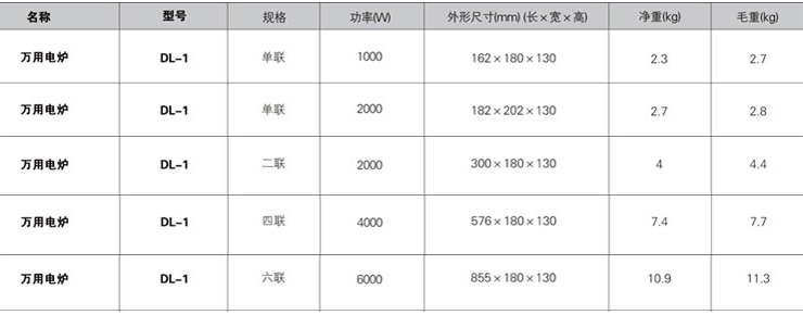 • 產(chǎn)品名稱:萬用電爐DL-1(單聯(lián)、雙聯(lián)、四聯(lián)、六聯(lián))