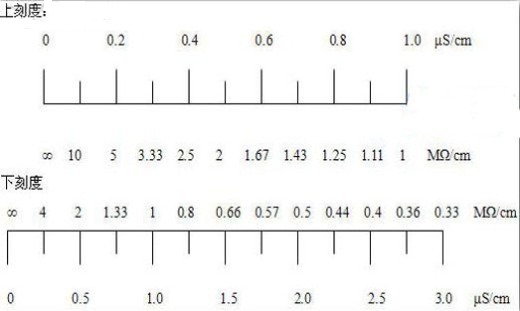 4.2.10上刻度、下刻度的電導(dǎo)率與電阻率的對照表: