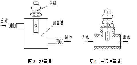 b) 用戶可采用圖三所示的測量槽,槽下方接進(jìn)水管(聚乙烯管),管道中應(yīng)無氣泡。也可將電極裝入不銹