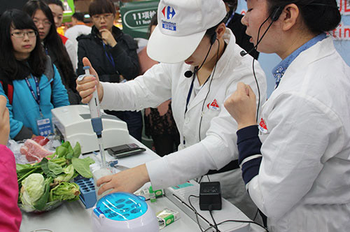 這是南京創(chuàng)建國家食品安全城市,區(qū)級(jí)監(jiān)管部門提升食品檢驗(yàn)檢測(cè)能力的一項(xiàng)創(chuàng)新嘗試。最近的一次抽樣快檢在6月2日,第三方檢測(cè)機(jī)構(gòu)技術(shù)員在鼓樓區(qū)市場(chǎng)監(jiān)管局工作人員陪同下,走進(jìn)清涼門農(nóng)貿(mào)市場(chǎng)、鄭和南路農(nóng)貿(mào)市場(chǎng)等4家農(nóng)貿(mào)市場(chǎng),采集了莧菜、空心菜、生菜、西蘭花、豆腐、腐竹、豬肉、蝦、干辣椒等40批次產(chǎn)品,主要檢測(cè)了農(nóng)藥殘留、瘦肉精、甲醛、孔雀石綠、鉛、蘇丹紅等14個(gè)項(xiàng)目。