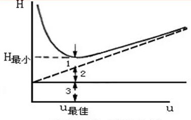 在u一定時,A、B及C三個常數(shù)越小,峰越銳,柱效越高。反之,則峰擴張,柱效低。用VanDeemter方程式可以解釋塔板高度—流速曲線。在低流速時(0~u 之間) u越小,B/u項越大,C u項越小。此時,Cu項可以忽略,B/u項起主導作用,u增加則H降低,柱效增高。