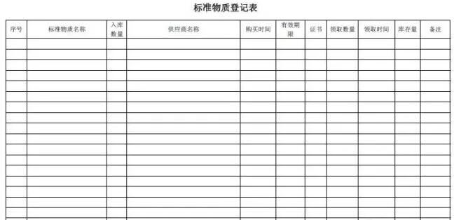 標準物質驗收完畢入庫前要建立標準物質臺帳,這是標準物質的明細表,通過臺帳我們可以看出購置時間、入庫時間及數量等信息,有助于標準物質的查詢。