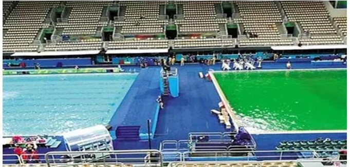 據(jù)德國(guó)《焦點(diǎn)》周刊網(wǎng)站的相關(guān)報(bào)道,8月8日,里約泳池的水還是淡藍(lán)的,而當(dāng)觀眾和運(yùn)動(dòng)員在9日為女子雙人10米跳臺(tái)決賽作準(zhǔn)備時(shí),他們看到水池變成綠色。露天場(chǎng)館里并列的兩個(gè)池子,水球和花樣游泳池池水碧藍(lán),藍(lán)得像藍(lán)寶石;而跳水池卻一夜間陡然變色,綠得像翡翠。