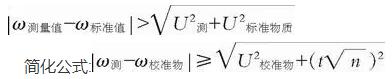 如果實驗室對標準物質(zhì)的測量值超出了標準物質(zhì)特性量值的不確定度范圍,是不能直接得出測量結(jié)果存在偏差的結(jié)論的,原因是標準物質(zhì)的不確定度U標準物質(zhì)僅包括了與標準物質(zhì)定值、均勻性、穩(wěn)定性有關(guān)的不確定度,沒有涉及用戶在實驗室里對標準物質(zhì)進行測量有關(guān)的隨機不確定度U測。因此,應(yīng)采取以下通用公式判斷標準物質(zhì)測量值與標準值之間存在顯著偏差::