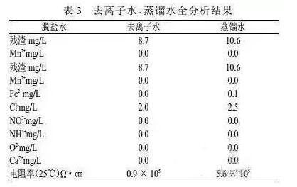 用離子交換法制得的化驗(yàn)用水,常稱去離子水或離子交換水。出離子水質(zhì)高于蒸餾水塔蒸餾出的蒸餾水水質(zhì),僅含0.01mg/L的溶解型溶質(zhì)(水的電阻率為9.0·㎝)。詳見(jiàn)(表3)所列。