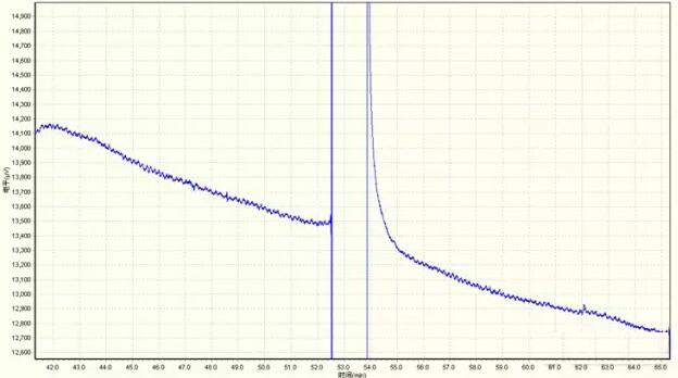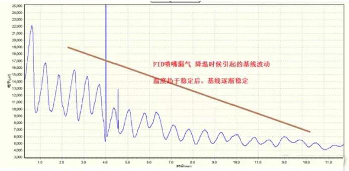 圖9 FID噴咀未擰緊漏氣降溫時候引起的基線波動