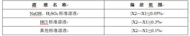 (5)滴定液的濃度標(biāo)定值應(yīng)與名義值一致,若不一致其最大與最小標(biāo)定值在名義值的±5%之間;