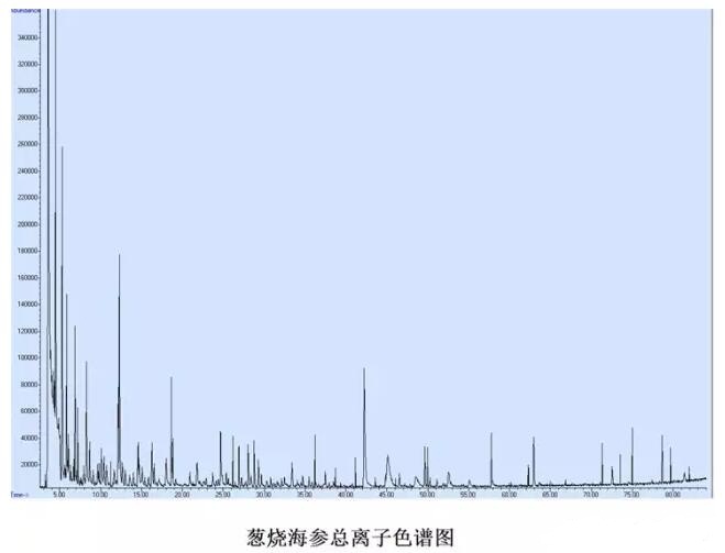蔥燒海參頂空固相微萃取的總離子色譜圖(TIC)如下: