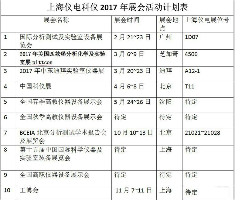 上海儀電科儀2017將參加的展會(huì)活動(dòng)如下: