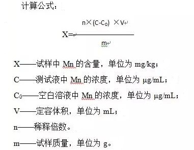 將樣品放在馬弗爐550℃±15℃溫度下灰化,分解有機質(zhì)后,加鹽酸使灰分中的無機離子全部溶解,然后導(dǎo)入原子吸收分光光度計的空氣-乙炔火焰中原子化,測定錳元素的吸光度,并與錳元素校正溶液的吸光度比較定量。