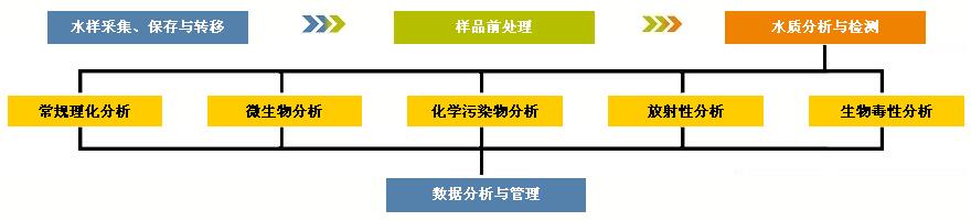 水質(zhì)檢測(cè)實(shí)驗(yàn)室設(shè)計(jì)和規(guī)劃需要充分考慮從樣品收集、樣品保存、樣品轉(zhuǎn)移、樣品制備、儀器分析、數(shù)據(jù)管理等一系列分析檢驗(yàn)流程,合理安排檢驗(yàn)儀器設(shè)備局,從常規(guī)水質(zhì)理化指標(biāo),分別按照檢測(cè)要求檢測(cè)微生物、有機(jī)/無機(jī)化學(xué)污染物、放射性以及生物毒性等進(jìn)行檢測(cè)。