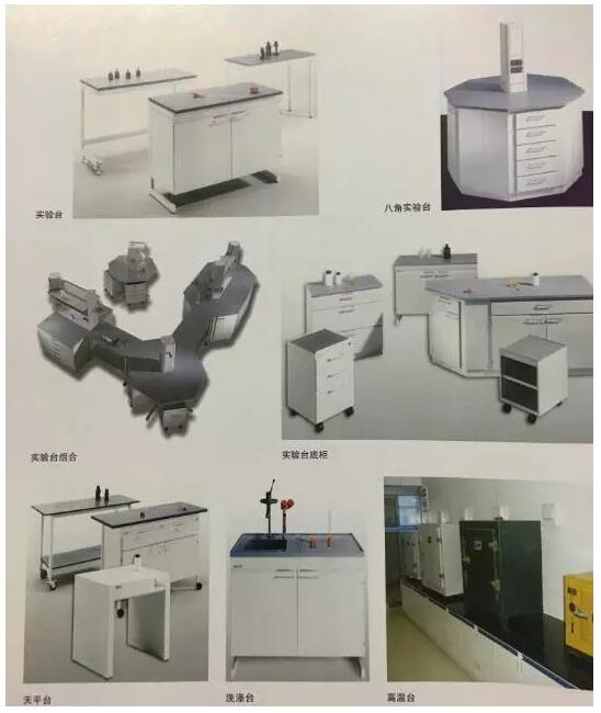 理化實(shí)驗(yàn)臺、儀器臺、電子天平臺、洗滌臺、取材臺、高溫臺等。