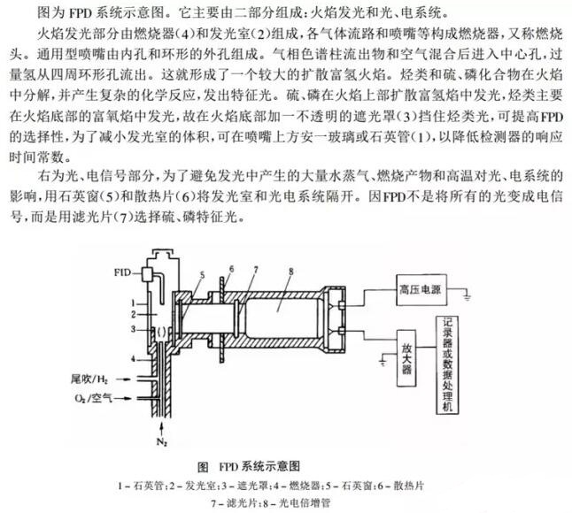 FPD是一種高靈敏度和高選擇性的檢測(cè)器,其特征是對(duì)硫?yàn)榉蔷性響應(yīng)。它是六個(gè)最常用的氣相色譜儀檢測(cè)器之一,主要用于含硫、磷化合物、特別是硫化物的痕量檢測(cè)。近年也用于有機(jī)金屬化合物或其他雜原子化合物的痕量檢測(cè)。