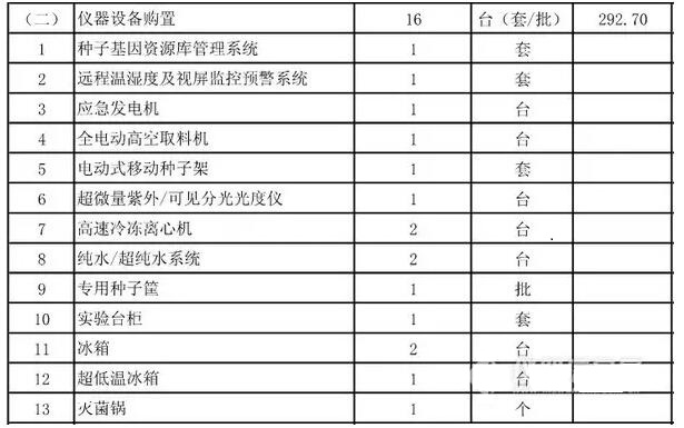 項(xiàng)目建設(shè)地點(diǎn)位于海南省儋州市寶島新村,主要建設(shè)內(nèi)容為新建中期種子備份庫(kù)1224平方米,道路與場(chǎng)地硬化950平方米,以及照明、給排水、消防等配套室內(nèi)外工程;購(gòu)置儀器設(shè)備16臺(tái)(套/批)�?偼顿Y966萬(wàn)元,全部為中央預(yù)算內(nèi)投資。項(xiàng)目建設(shè)期為2年。