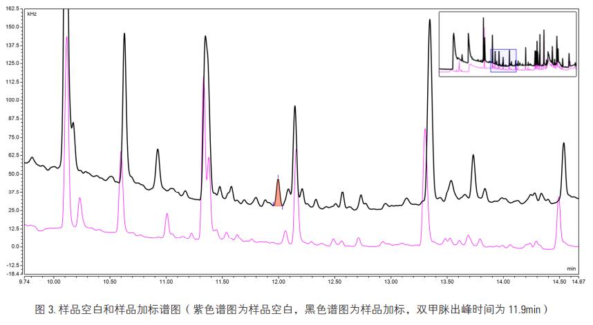 本方法在此標準方法的基礎(chǔ)上做了改進,將牛奶中的雙甲脒在酸性條件下水解為2,4-二甲基苯胺,用七氟丁酸酐衍生,氣相色譜法進行定量,結(jié)果是雙甲脒和其代謝產(chǎn)物的總殘留量。方法操作簡單,檢出限遠低于食品安全國家標準中規(guī)定的雙甲脒最大殘留限量0.05mg/kg。